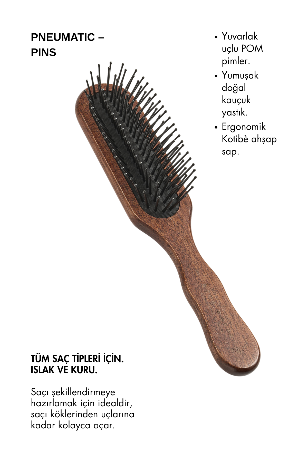 Acca Kappa'nın klasik ürünlerinden biri olan bu fırça, Kotibé ağacından yapılmış ergonomik bir sap, yumuşak doğal kauçuk bir yastık ve ısıya dayanıklı plastik kıllara sahiptir. Kılların uçları, kafa derisini çizmemek ve cildi nazikçe masajlamak için yuvarlatılmıştır. Bu fırça, saçları kolayca taramak için idealdir ve tüm saç tiplerine uygundur.